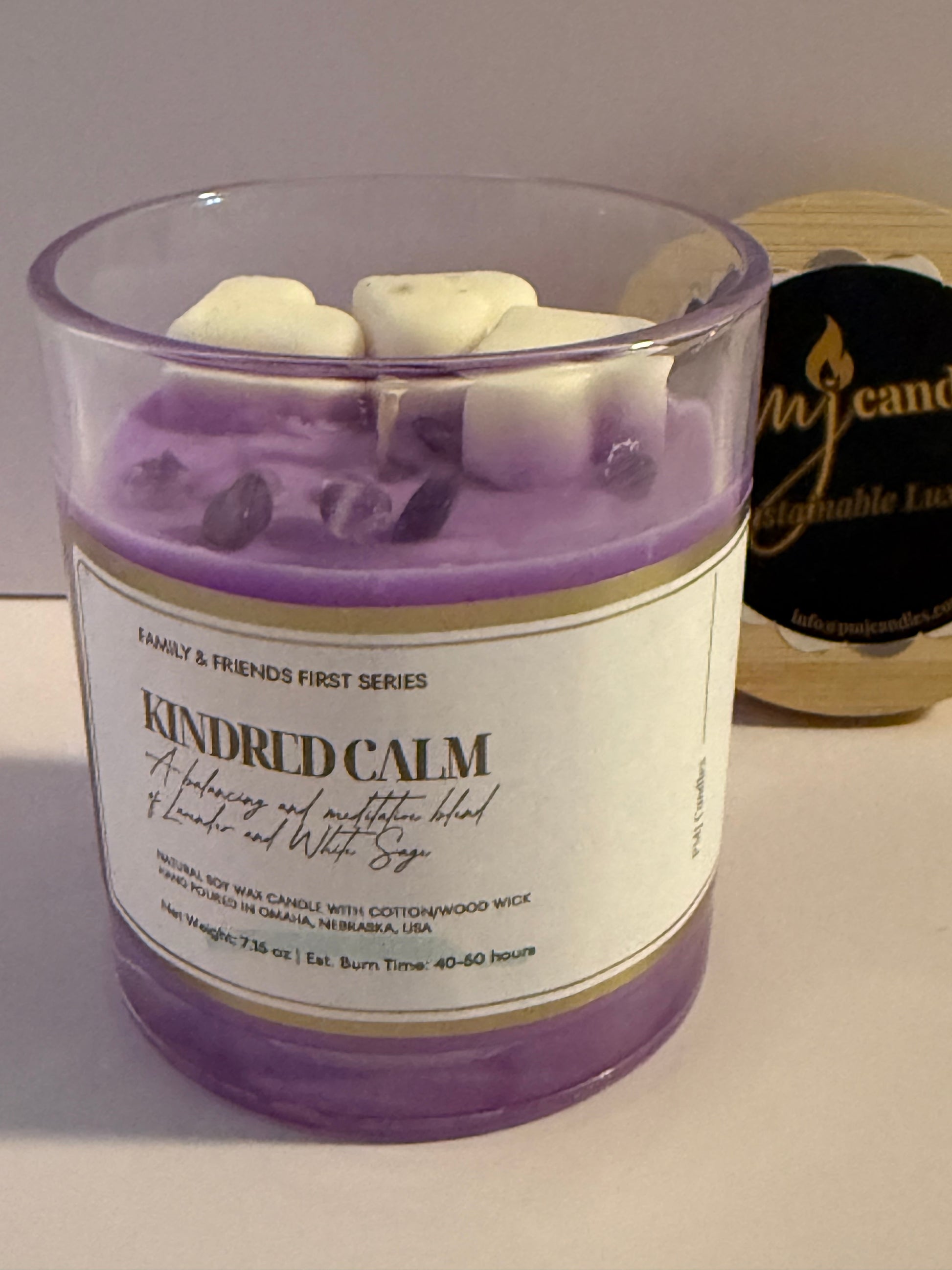 Experience tranquility with Kindred Calm, a soothing soy wax candle featuring a clean-burning cotton wick. This meditative blend of calming lavender, spearmint, eucalyptus and a little bit vanilla element creates the perfect atmosphere to relax and unwind. Part of our Family & Friends First series, it’s available in 8 oz, 10 oz, and 12 oz jars to suit your space. Light Kindred Calm and let its gentle aroma help you find balance and peace in your day.