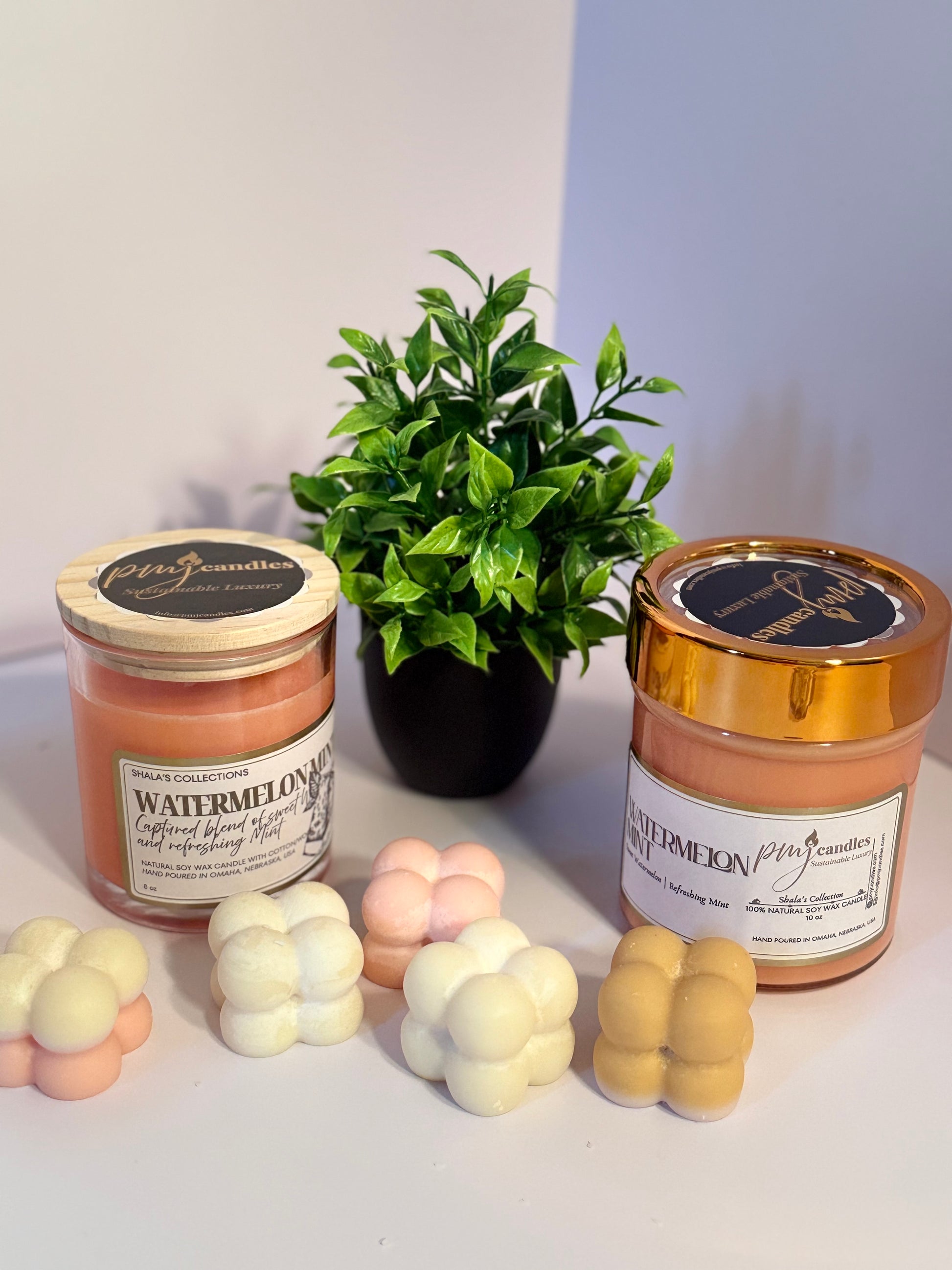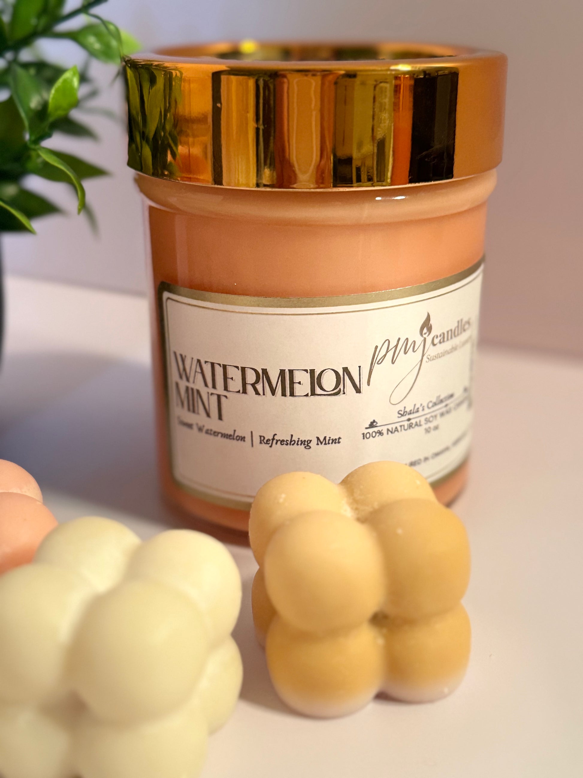 Experience the perfect harmony of sweet watermelon and invigorating mint with this soy candle from Another Shala's collection. Crafted with a clean-burning cotton wick, it offers a refreshing scent that revitalizes any space. Available in 8 oz, 10 oz, and 12 oz jars, it’s an ideal choice to brighten your home or office with a crisp, uplifting aroma.