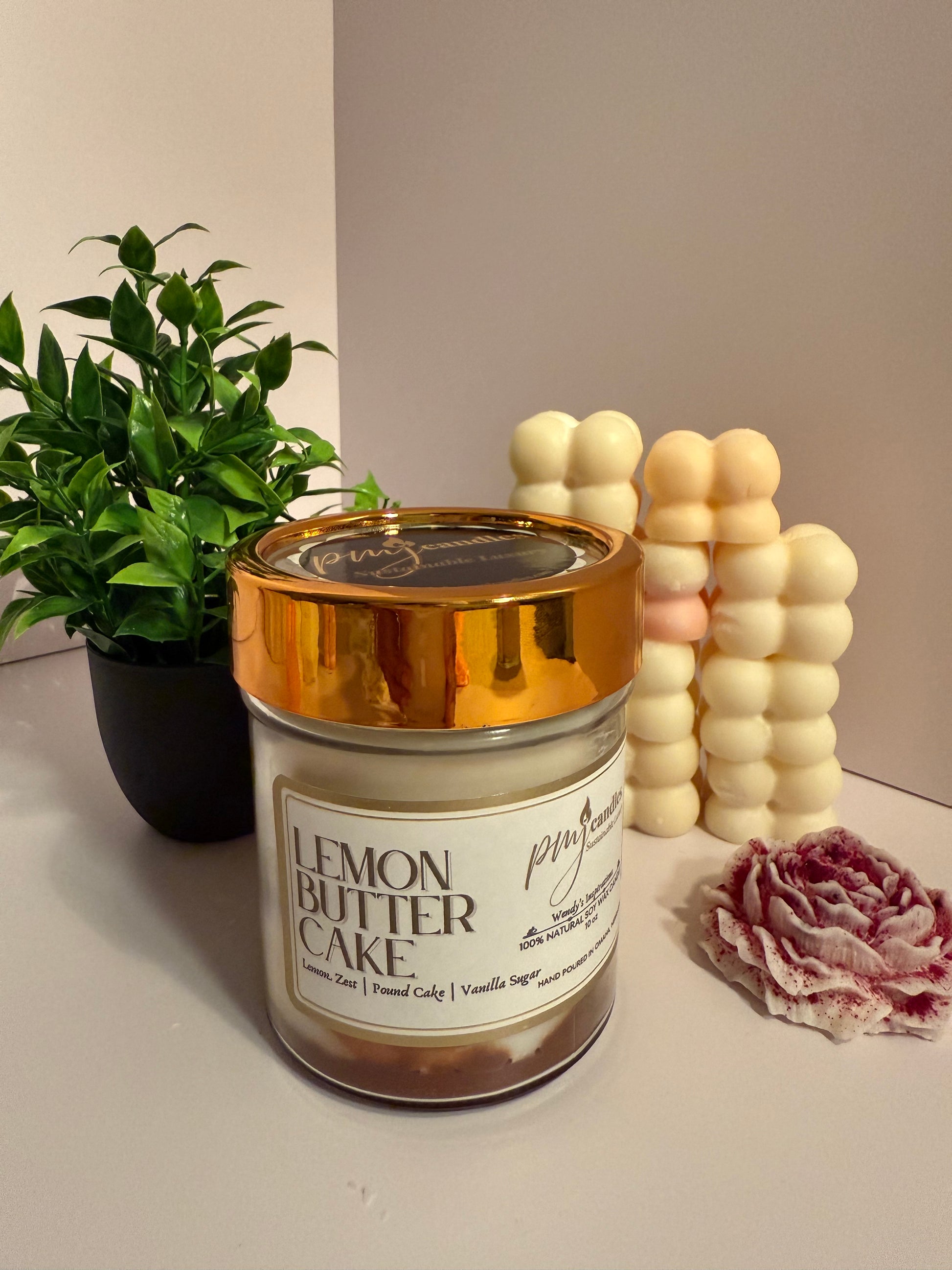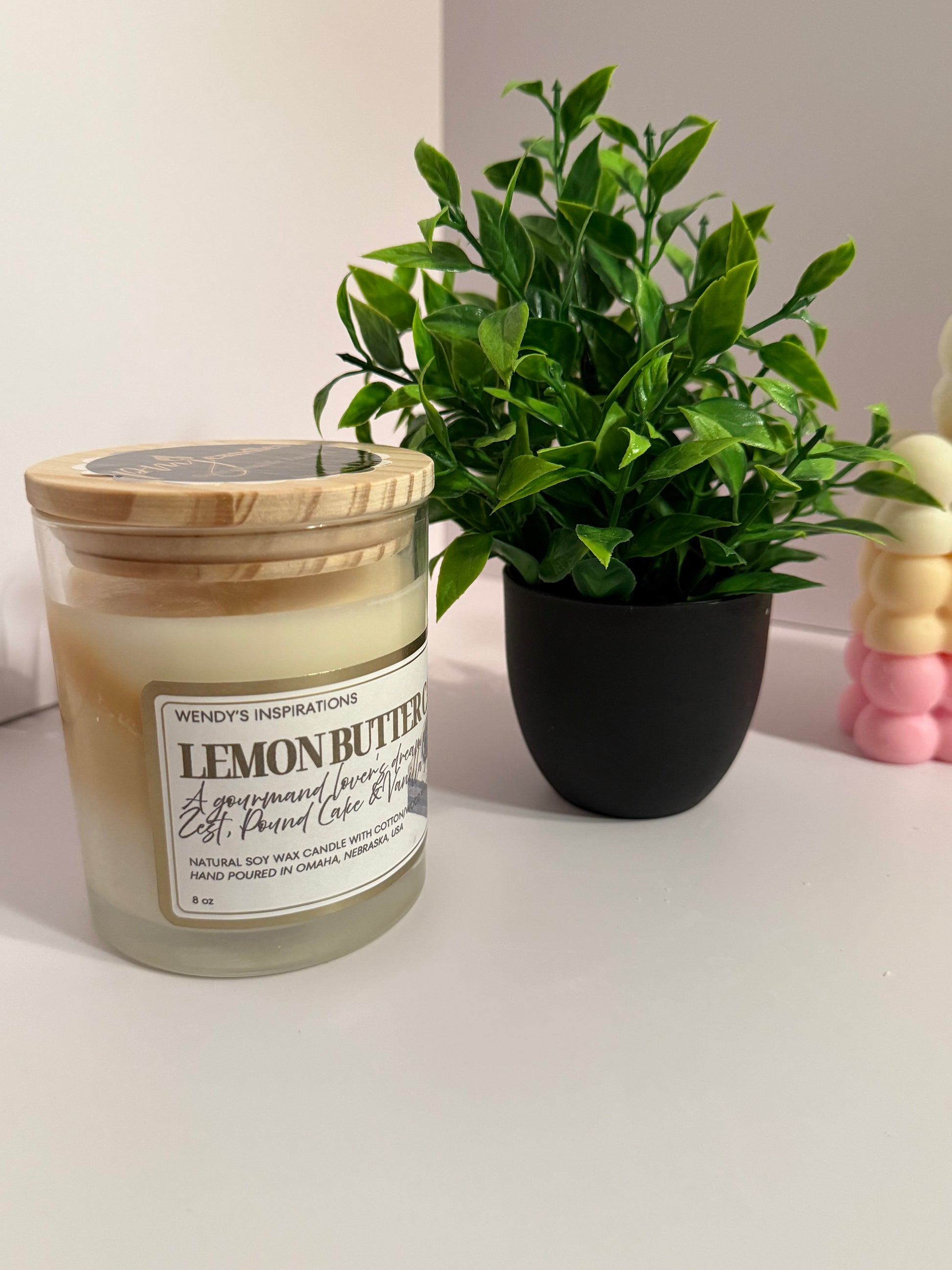 Experience the comforting aroma of freshly baked lemon cake with this luxurious candle. Blending zesty lemon, rich pound cake, and sweet vanilla sugar, it creates a warm, inviting atmosphere that feels just like home. Available in 8 oz, 10 oz, and 12 oz sizes, each candle comes in a beautifully chosen container jar, making it a perfect addition to your space or a thoughtful gift. Part of Wendy's Inspiration series, this candle brings a touch of elegance and delicious scent to any room.