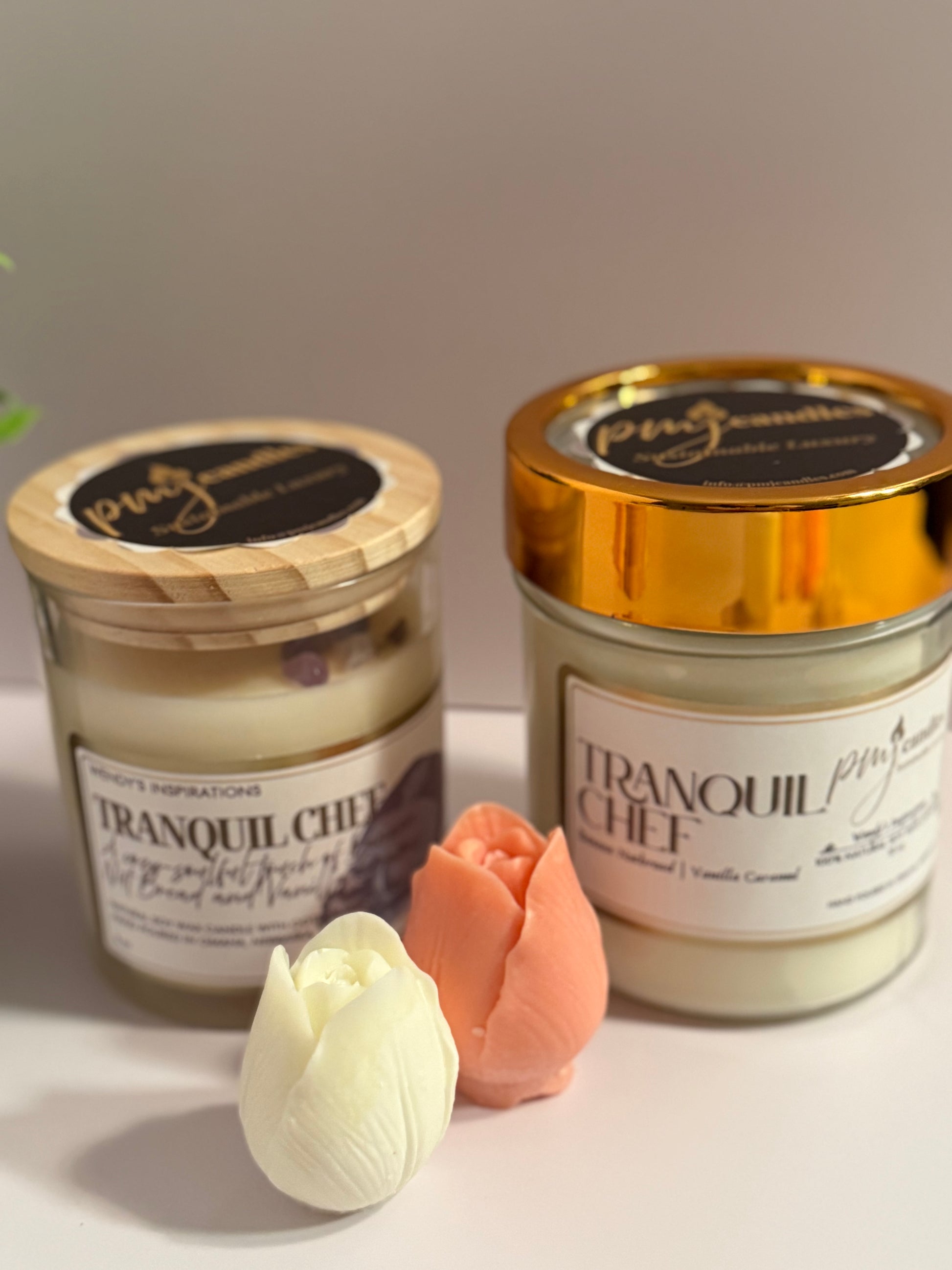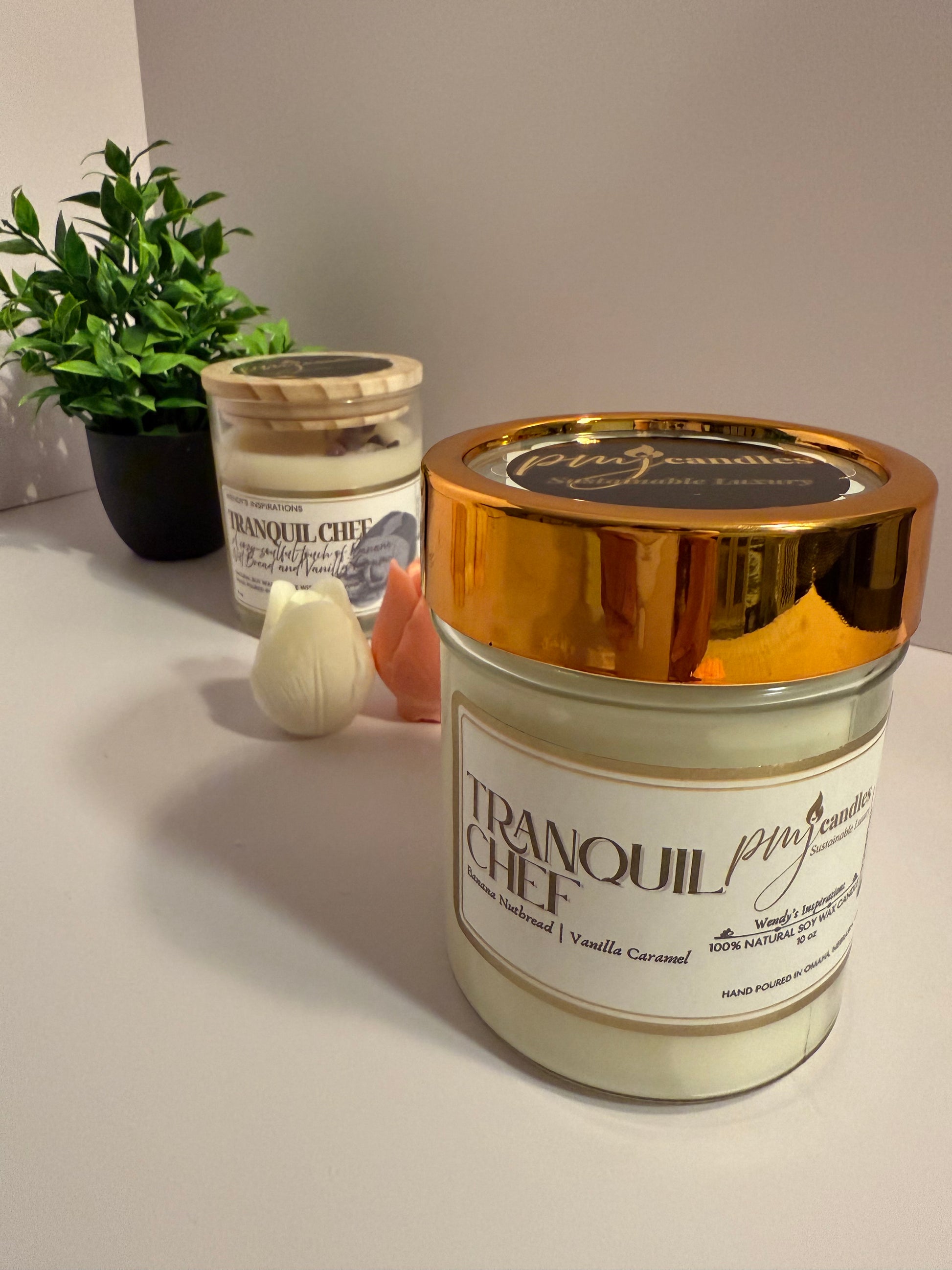 This piece, Tranquil Chef is a cozy, soulful touch of banana nut bread and vanilla caramel. This belongs to Wendy's Inspiration candles which are crafted to resonate with Wendy's multifaceted passions and generous soul - handcrafted candles with a warm, nostalgic and surprising scents that mirror Wendy's journey as a loving daughter, a chef, a creative-caring heart and a true friend.